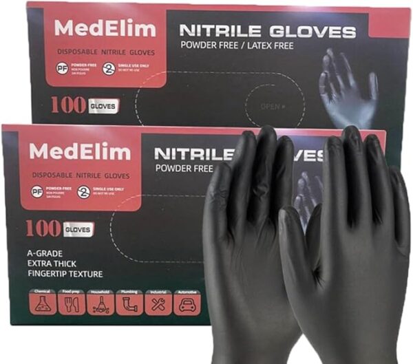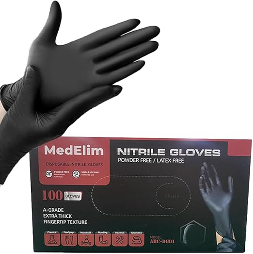 Nitrile Medical Gloves, Black, 5 Mil (100)