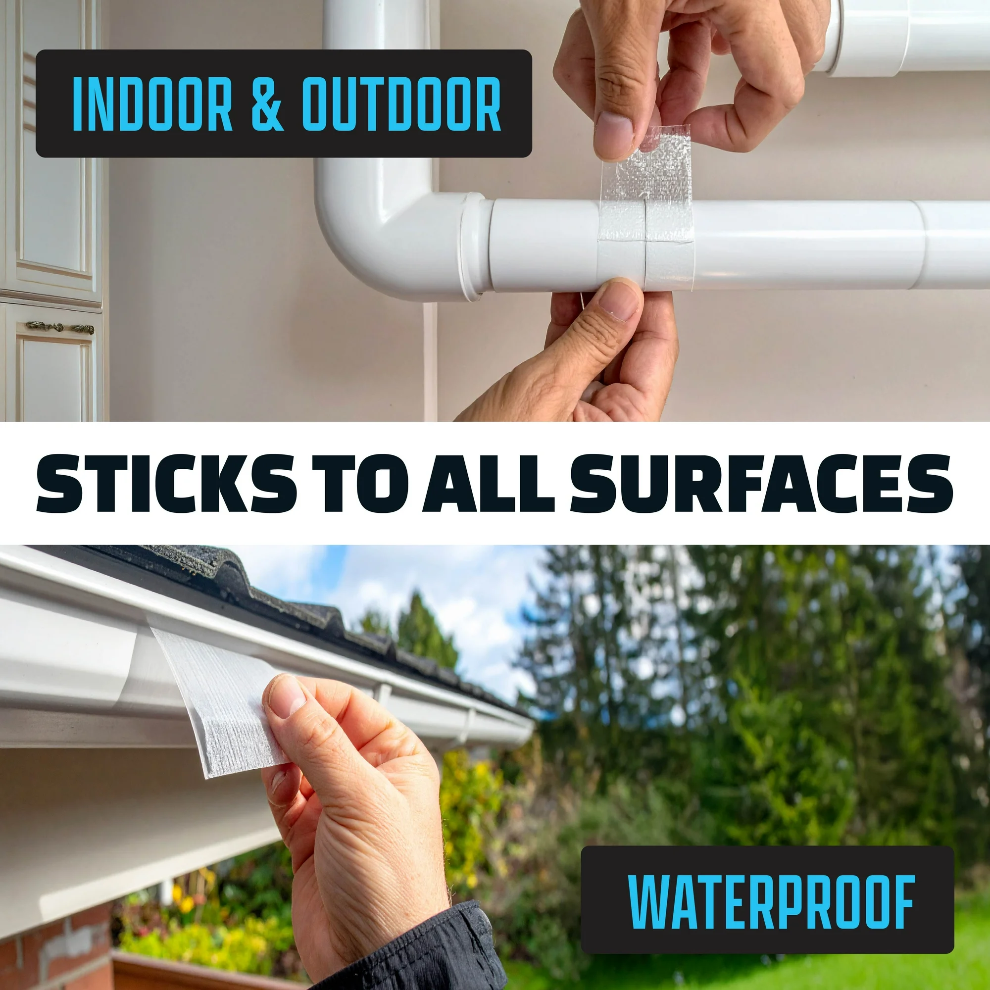Introducing Alien Shield! The ultra durable and water-proof tape that instantly locks into place to seal any leak. Just peel off the back and stick into place. Alien Shield’s ultra strong adhesive grips on instantly for a water-tight, permanent seal. Sticks to any surface wet or dry to instantly stop leaks, even underwater or under pressure! Alien Shield is a must for ductwork repair, leaky plumbing, and you’ll love it for your car. The ultra durable bond holds rain or shine, so it is perfect for indoor and outdoor use. Alien Shield even sticks to rough and uneven surfaces. Alien Shield is clear and is ideal for lighting fixtures.